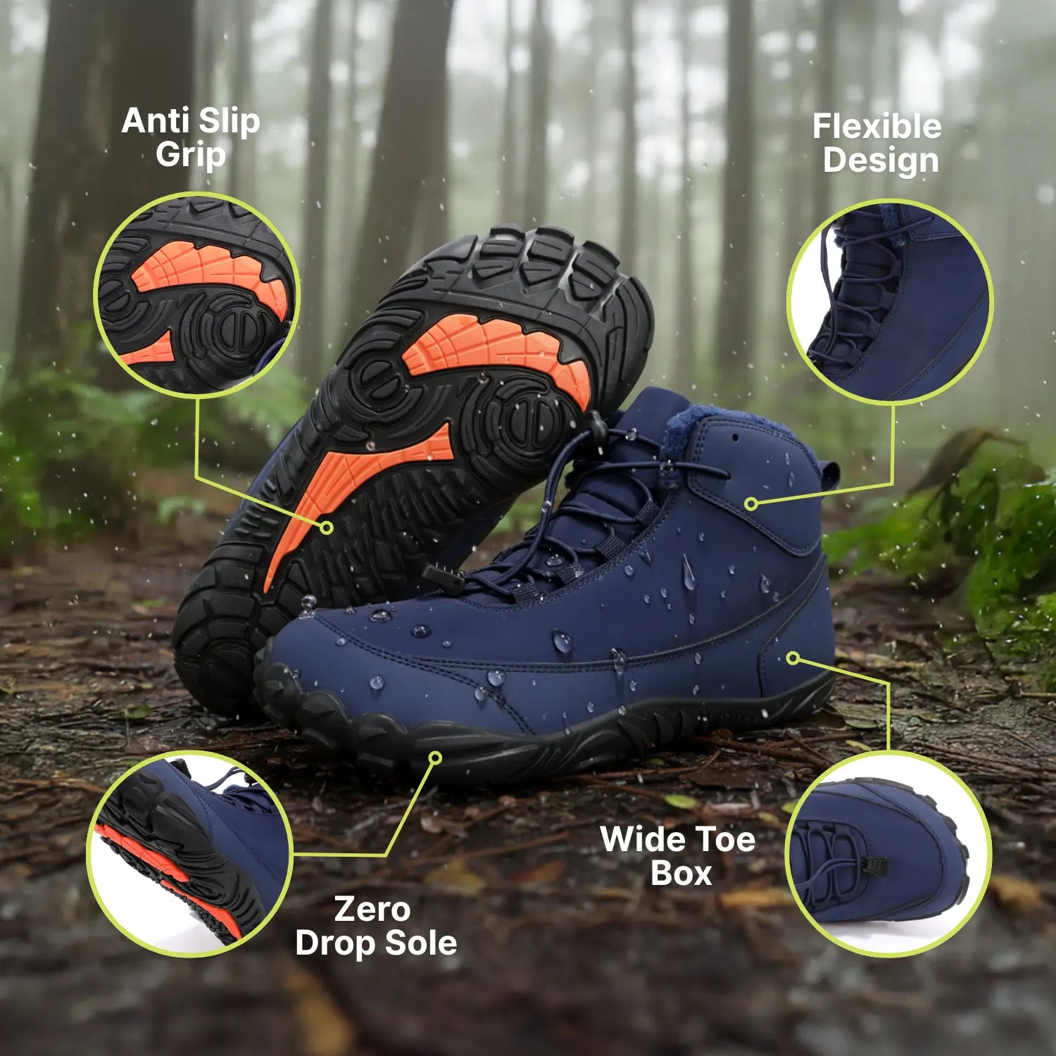Unlike a typical “waterproof boot,” it’s an engineered system that stays flexible with a natural ground‑feel, so the benefits of barefoot movement remain even in cold, wet conditions.