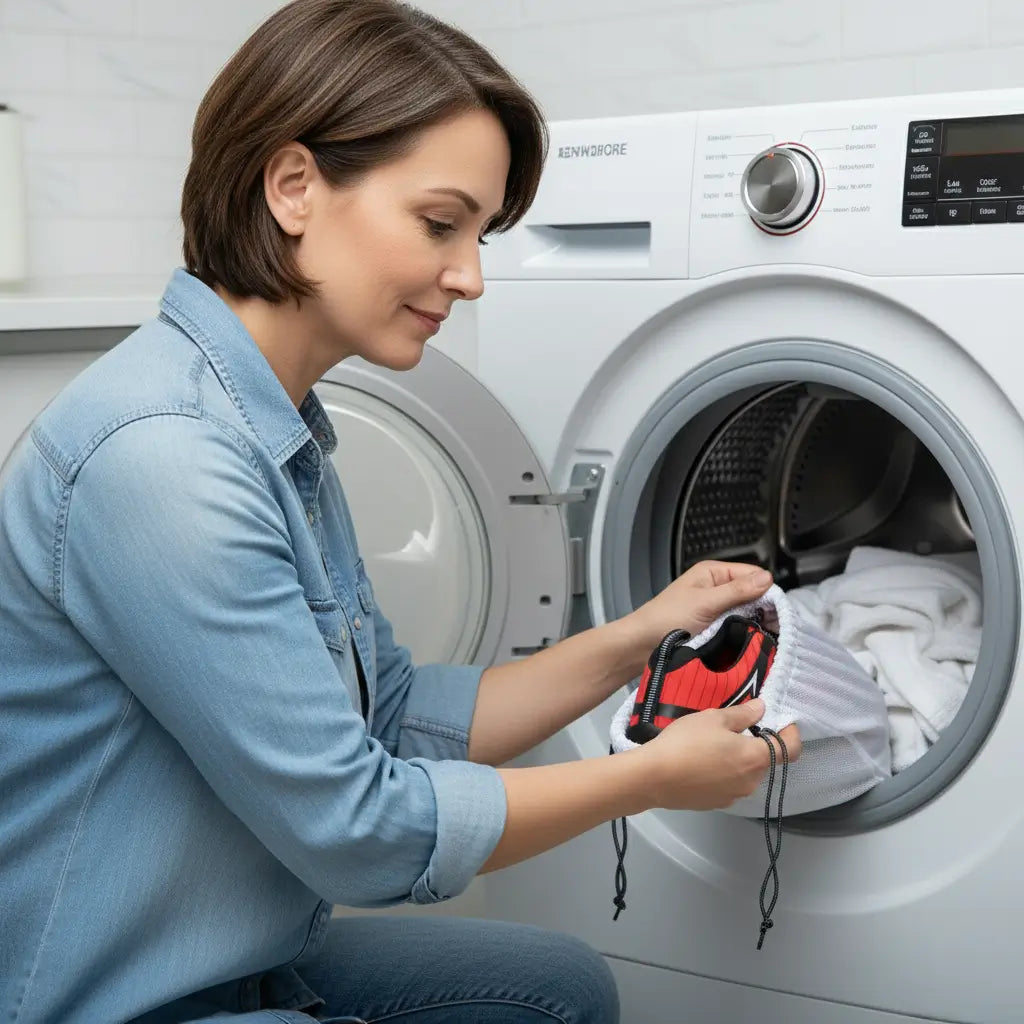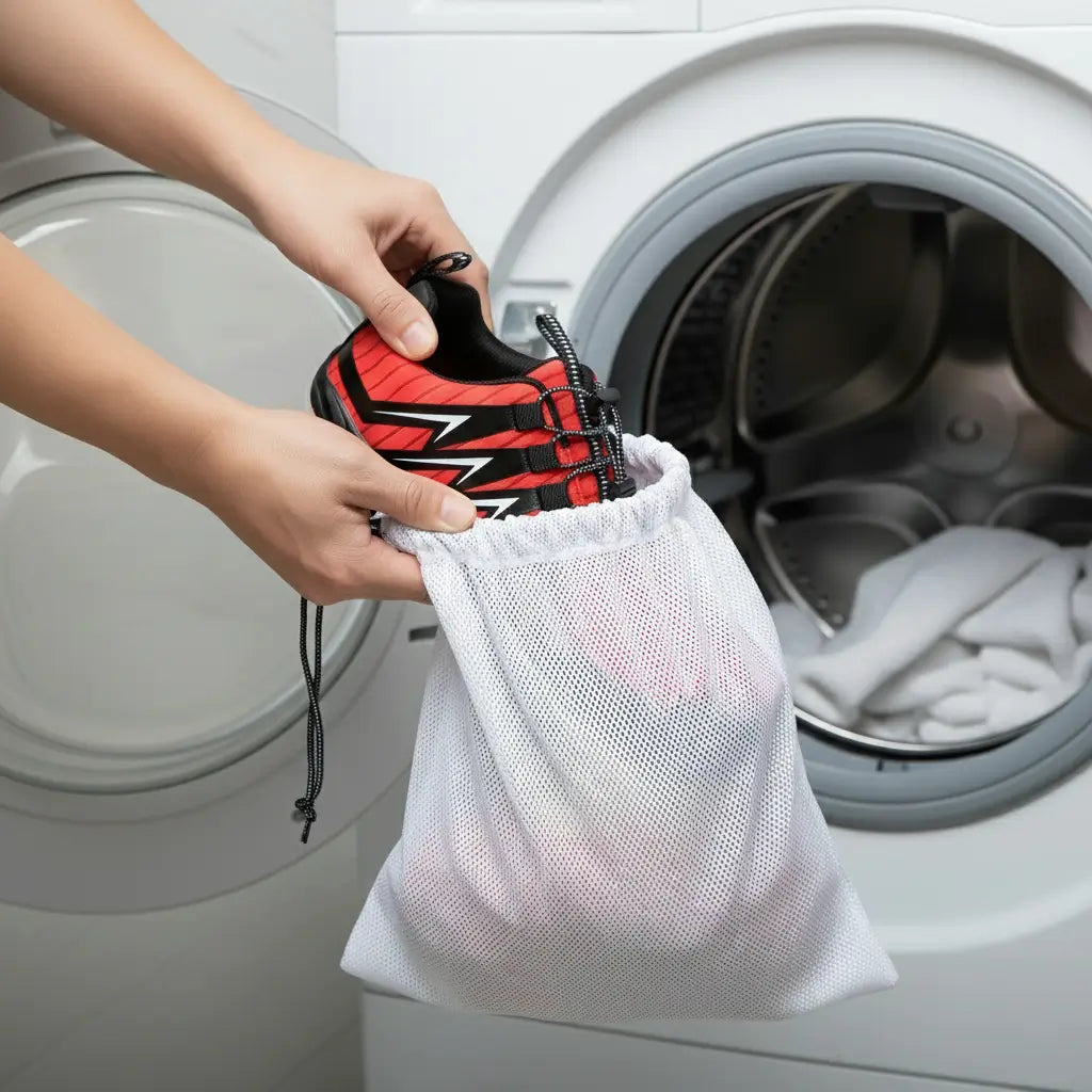 Place shoes, insoles, and laces in a mesh laundry bag to minimize abrasion.
